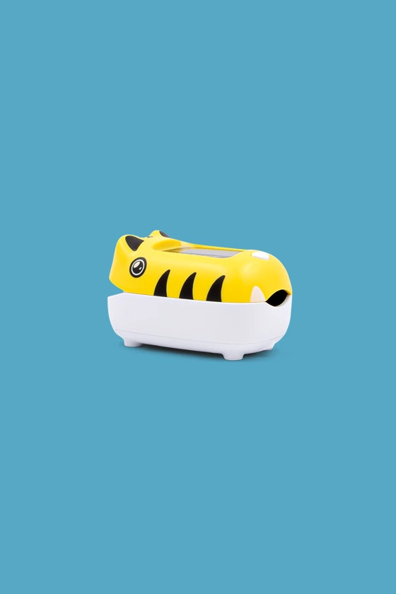 Állatfigurás pulzoximéter az oxigén-telitettség és a pulzus mérésére ujjon csecsemőknek és kisgyerekeknek.